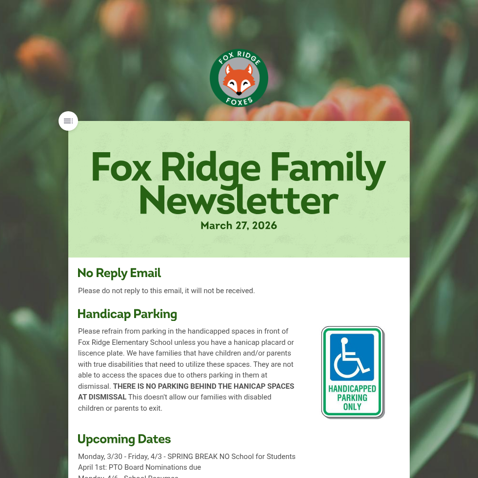 Newsletters are sent out via Finalsite